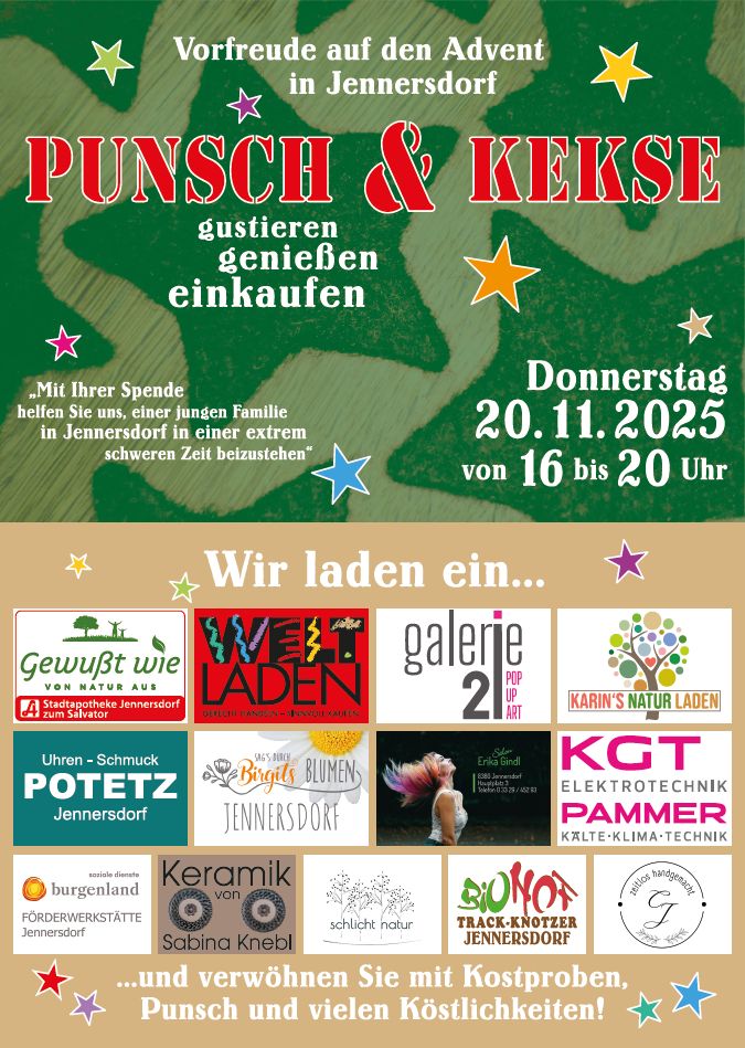 Am Donnerstag, 20. November 2025 findet von 16 bis 20 Uhr die Veranstaltung „Punsch & Kekse” statt.