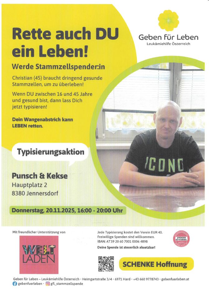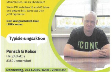 Im Zuge dieser Veranstaltung findet eine Typisierungsaktion in der ARCHE Jennersdorf statt.