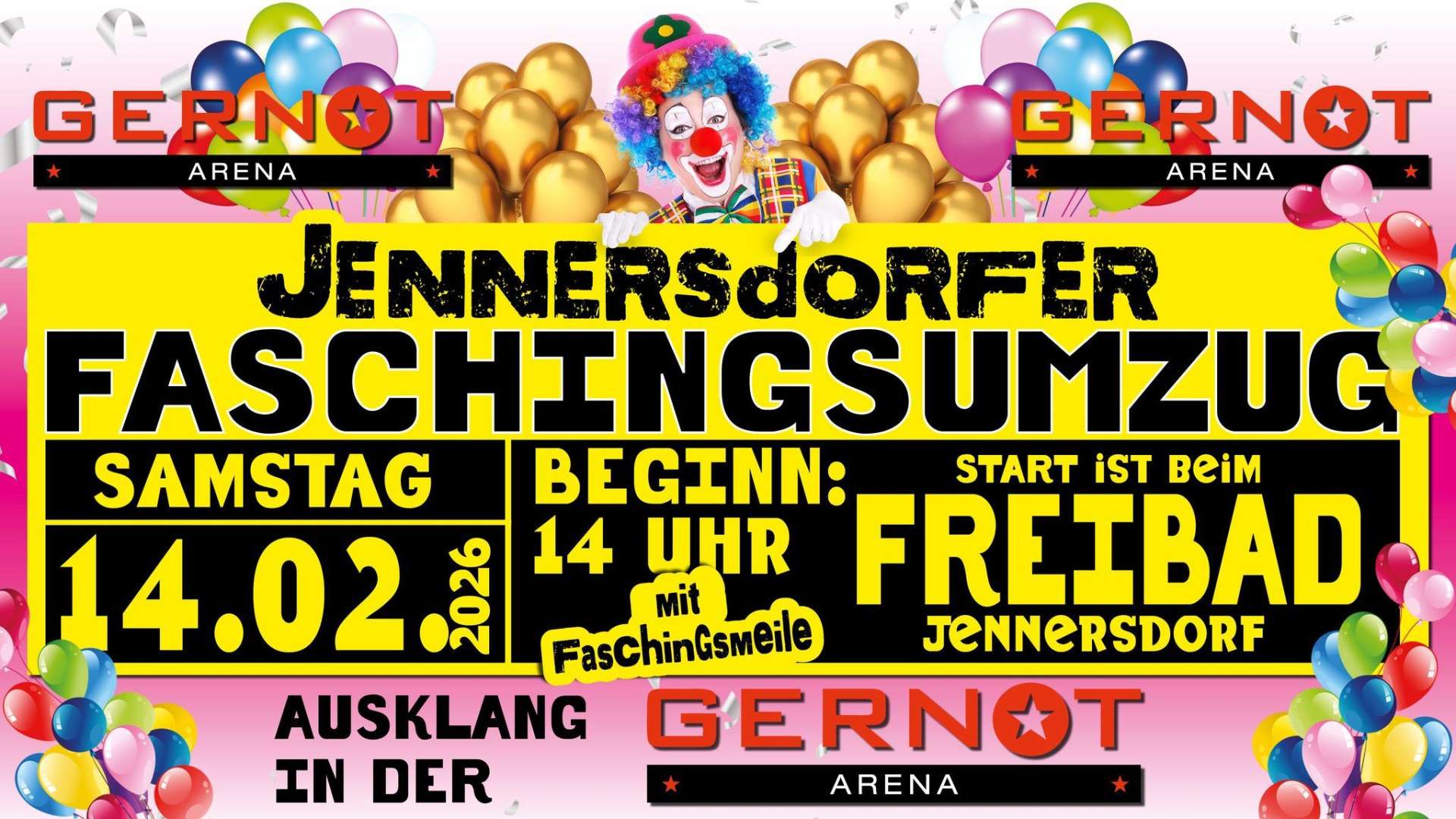 Start ist beim Frei­bad Jen­ners­dorf mit Faschings­mei­le, Aus­klang in der Ger­not Arena