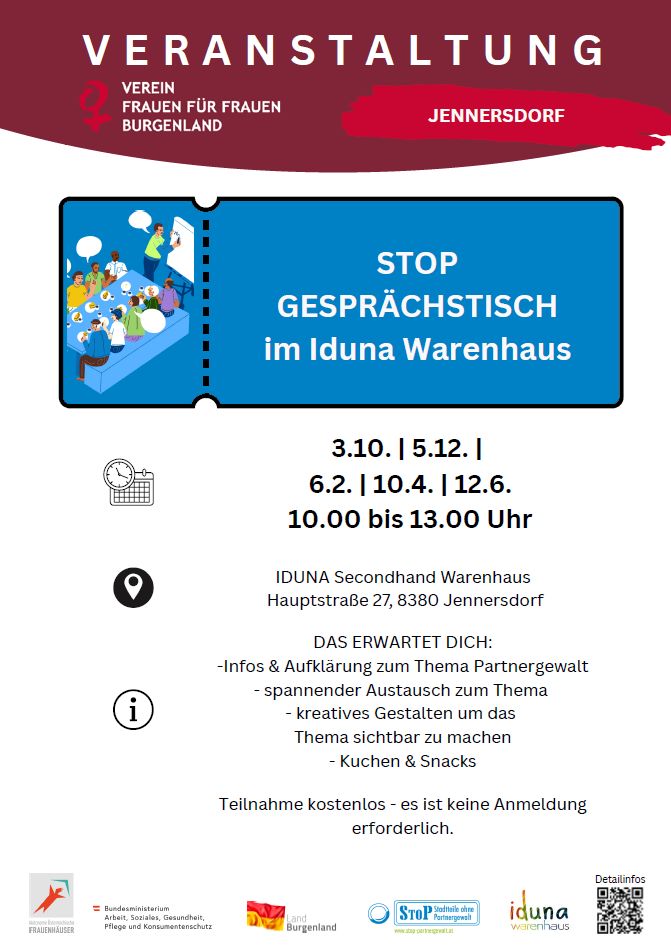 Offe­ner Gesprächs­tisch zum The­ma Part­ner­ge­walt im Idu­na Second­hand Waren­haus in Jennersdorf.