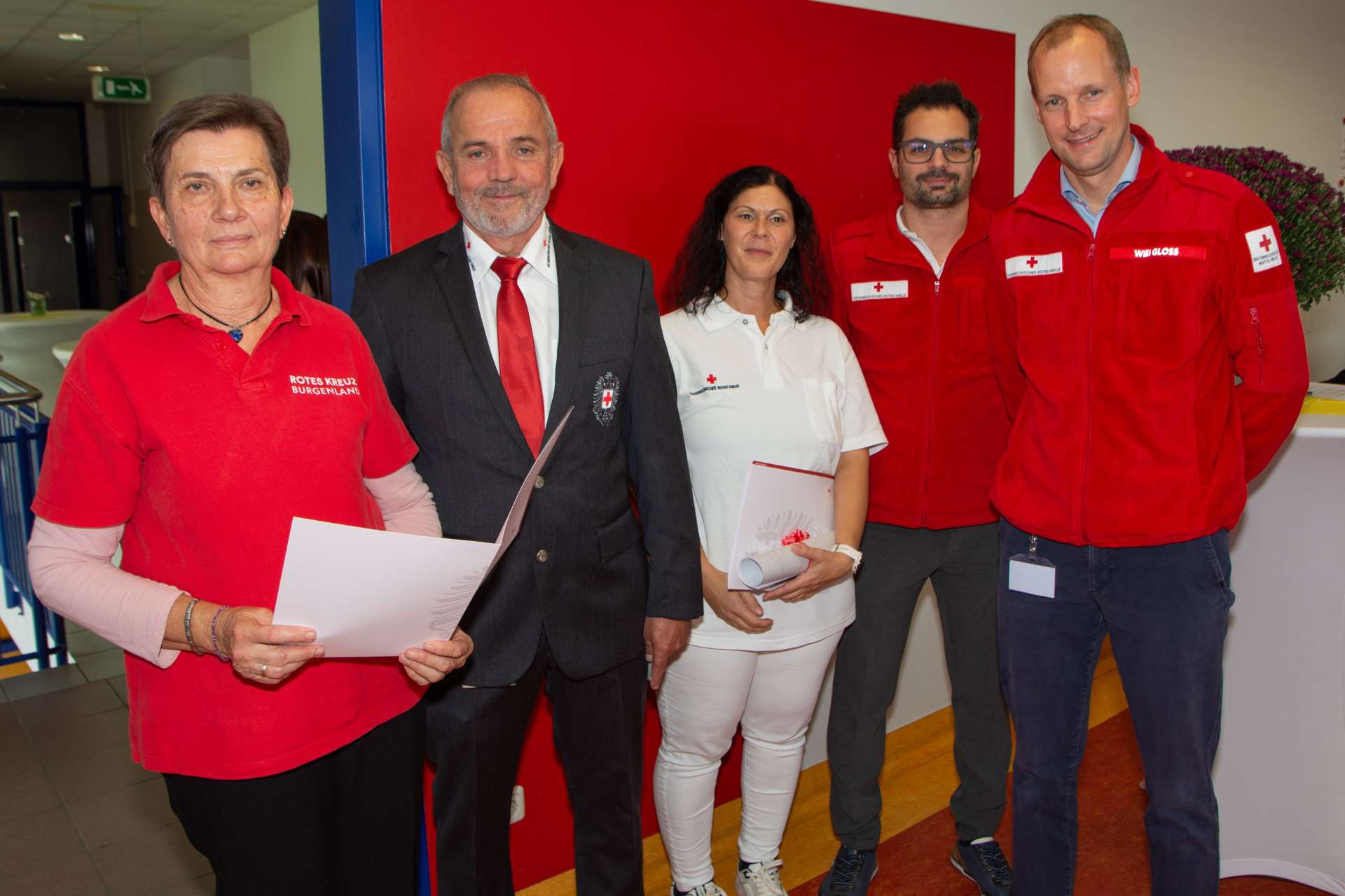 Zahl­rei­che Gäs­te, Ange­hö­ri­ge, Mit­ar­bei­te­rin­nen und Mit­ar­bei­ter sowie Ver­tre­te­rin­nen und Ver­tre­ter des Roten Kreu­zes nah­men an der Jubi­lä­ums­fei­er teil. Als beson­de­re Ehren­gäs­te durf­ten Wil­helm Gloss, MSc MBA (Lei­tung Gesun­d­heits- und Sozia­le Diens­te des Lan­des­ver­ban­des Bur­gen­land) und Domi­nik Gei­ler, MSc (Pfle­ge­dienst­lei­tung) begrüßt werden.