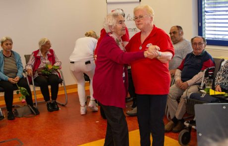 Für die musi­ka­li­sche Umrah­mung sorg­ten zwei jun­ge Musik­schü­le­rin­nen mit ihrer Har­mo­ni­ka und tru­gen damit zu einer stim­mungs­vol­len Atmo­sphä­re bei. Auch die Besu­che­rin­nen und Besu­cher des Senio­ren­ta­ges­zen­trums selbst betei­lig­ten sich aktiv an der Gestal­tung des Fes­tes – mit lie­be­voll ein­stu­dier­ten Dar­bie­tun­gen, die von Her­zen kamen und das Publi­kum begeisterten.